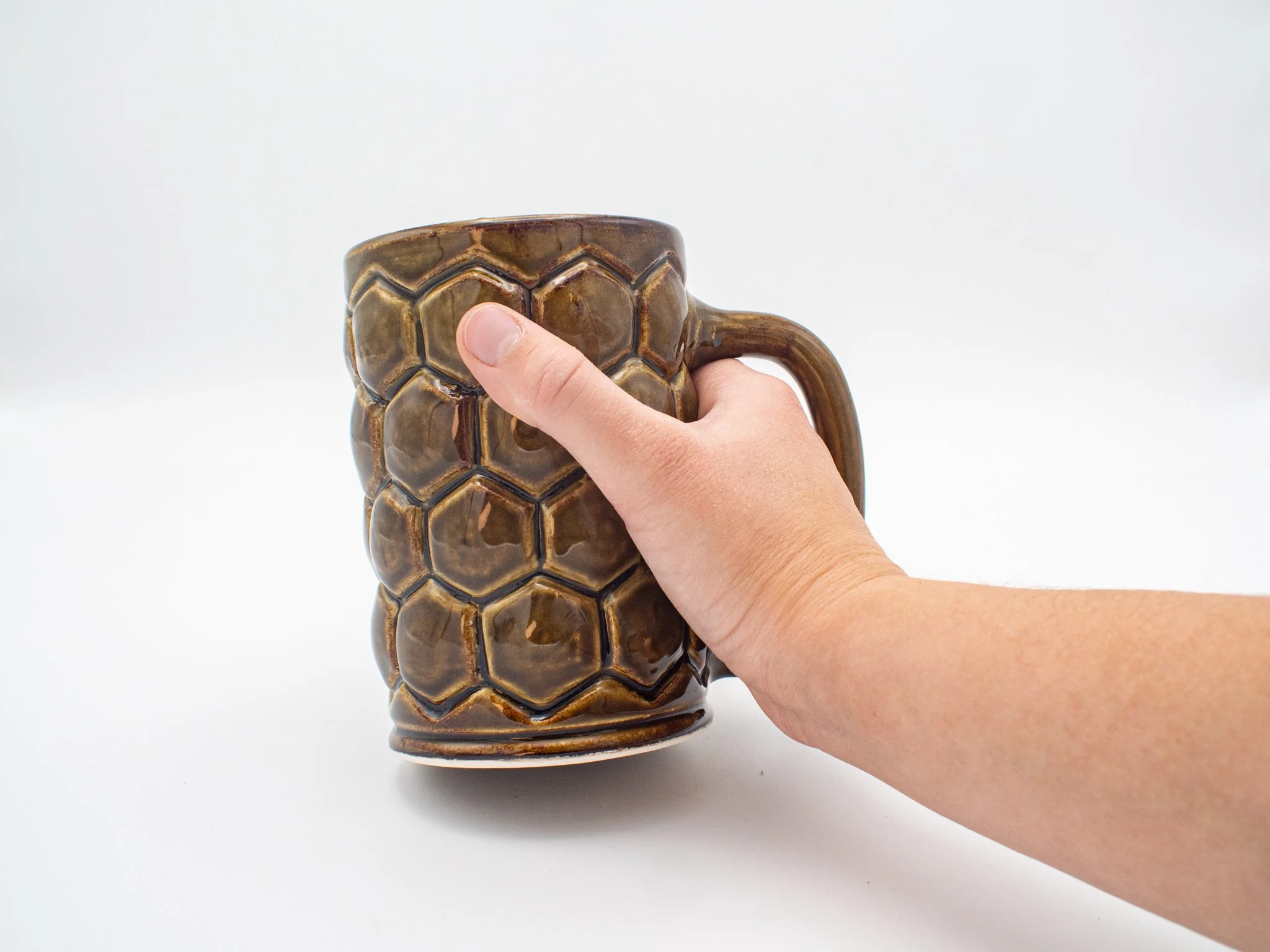 I throw these mugs on my pottery wheel, then sculpt and attach lots of oyster mushrooms to the sides so it looks like mushrooms are growing out of the mug! I finished it with a comfortable, sturdy handle and a silky smooth foot to protect your furniture.