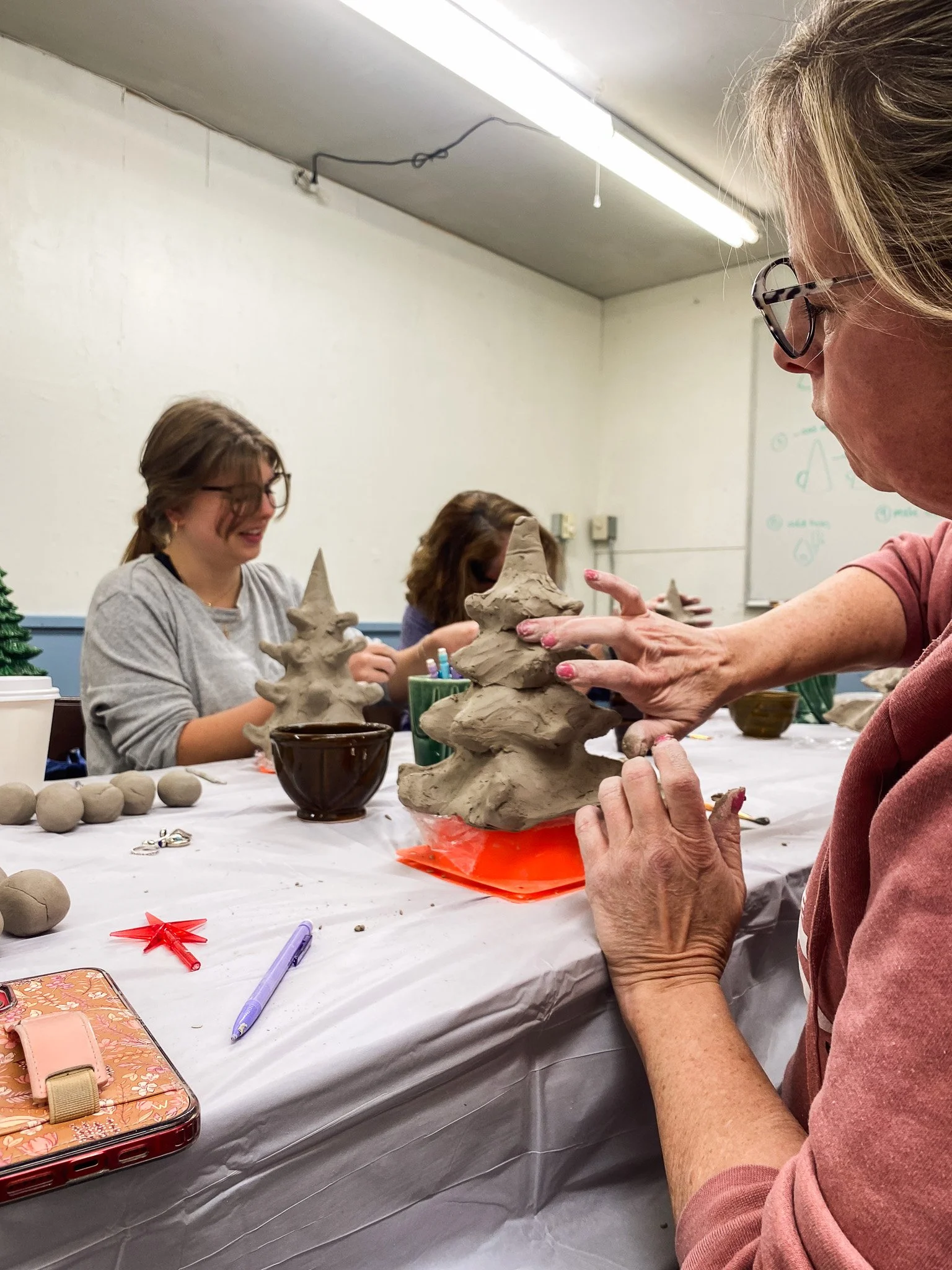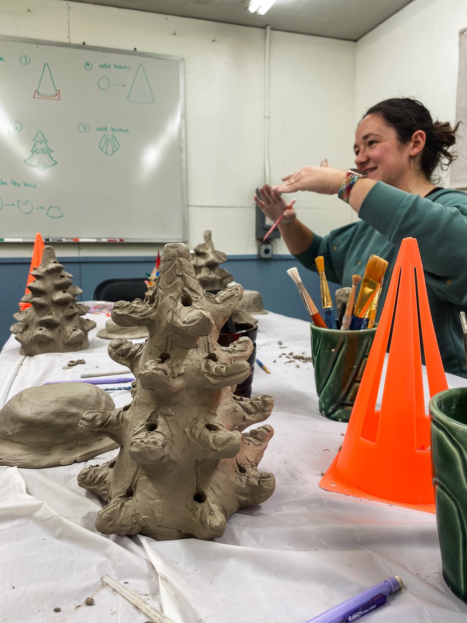 Demonstration: our workshop begins with a demonstration of how to construct a vintage style pottery Christmas tree using hand building techniques. Then, our instructors will then guide you through each of the following steps by giving you detailed demonstration to follow as you progress.